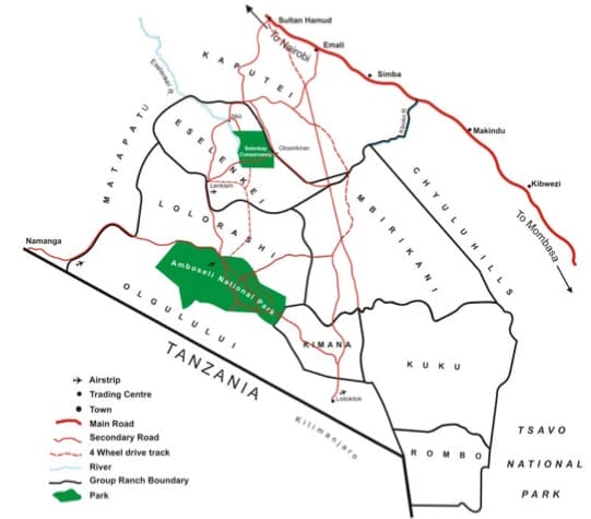 Map of the Amboseli Eco System including Selenkay Conservancy