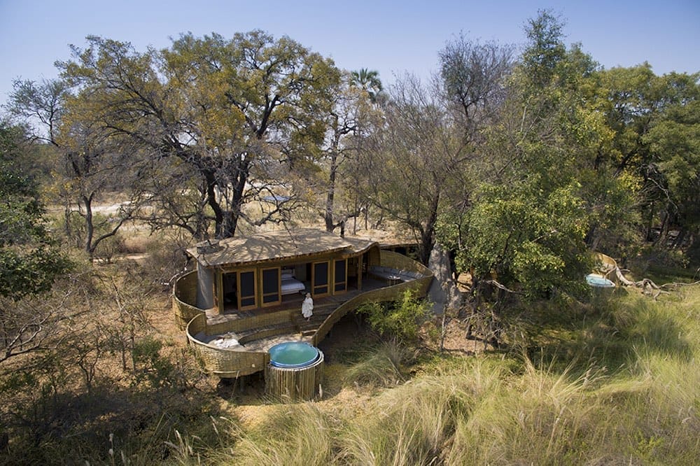 The lodge is positioned between permanent water and grass-swept plains on a private concession in the Okavango Delta, adjacent to the Moremi Game Reserve. The lodge is surrounded by an abundant array of wildlife.