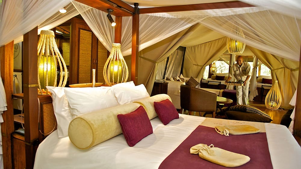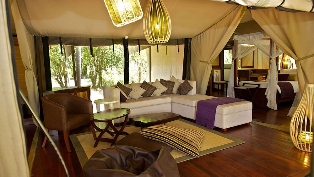 Mara Intrepids boast 30 luxurious tents that are widely spread across a large riverside site to ensure you the optimum of privacy and peace. Each tent is furnished in the classic style of the grand African safaris, with large four-poster beds and handsome reproduction furniture, offset by modern en-suite bathrooms with hot showers, flush toilets and all modern amenities. Each tent sits on a shady raised platform, with sweeping views over the riverbanks where a large variety of animals come to drink.