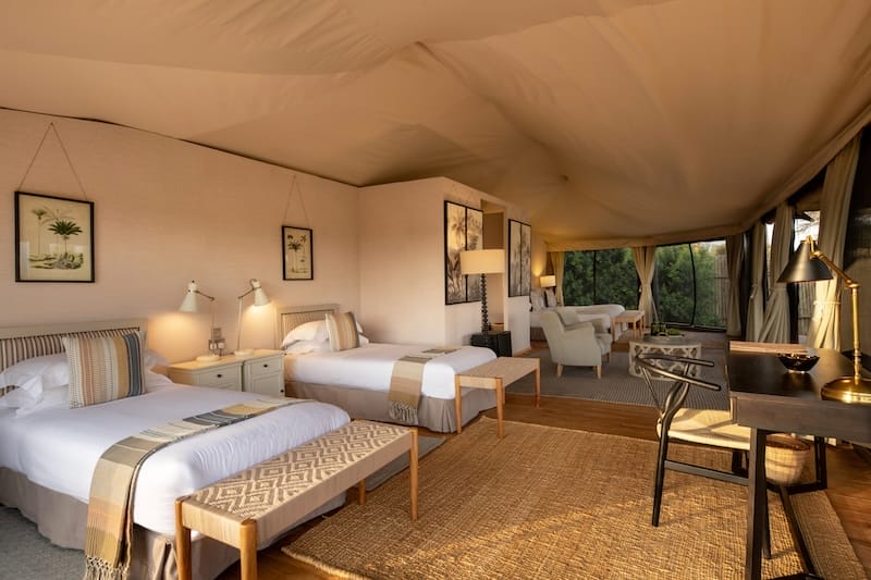 The two-bedroom family tent is ideal for groups, while visits to nearby Samburu communities offer meaningful cultural immersion and learning.