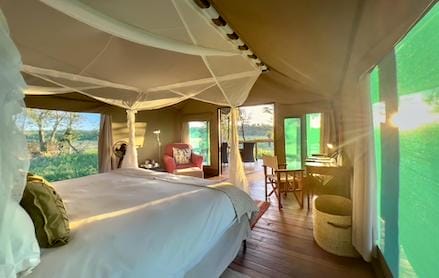 Seven large comfortable Meru-style tents all have en-suite facilities, open air showers and private verandas.
