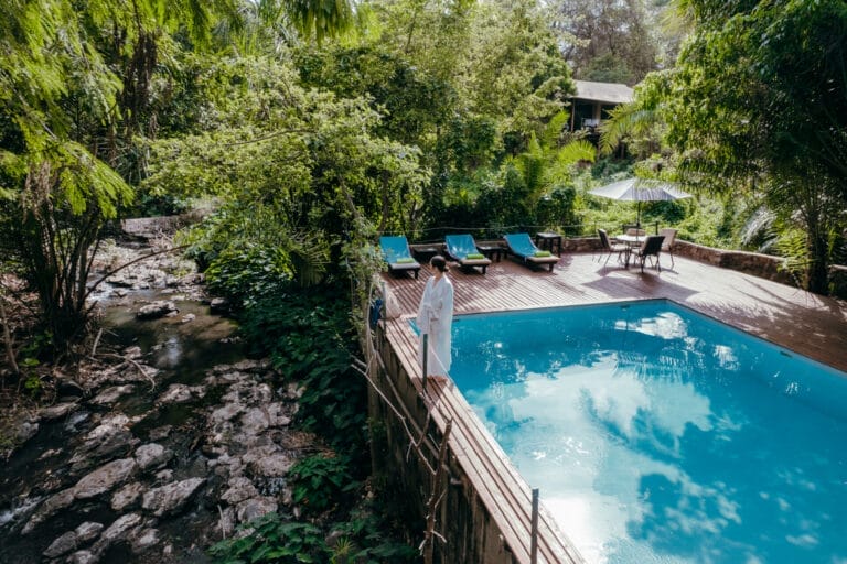 Hidden within sixty acres of private indigenous forest on the edge of Meru National Park, Rhino River Camp offers a rare blend of wilderness, serenity, and comfort. It is the only Porini property that features a swimming pool, a welcome relief during Meru’s warm afternoons. The camp sits along the Kindani River, where the sounds of flowing water merge with birdsong and forest rustles to create a soothing natural soundtrack.