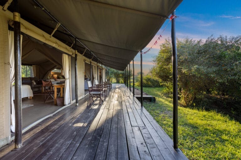 Porini Mara Camp sits within Ol Kinyei Conservancy, one of the wildest and most exclusive landscapes in the Greater Mara ecosystem. With only six guest tents, this camp is defined by intimacy — the kind that lets you hear lions calling from the valley below and wake to the soft shuffle of wildlife passing through the grass.