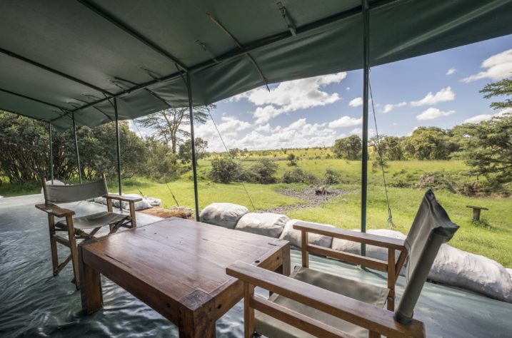 Porini Rhino Camp lies amidst unspoiled savannahs, flanked by the Aberdare Mountains and Mount Kenya.Â