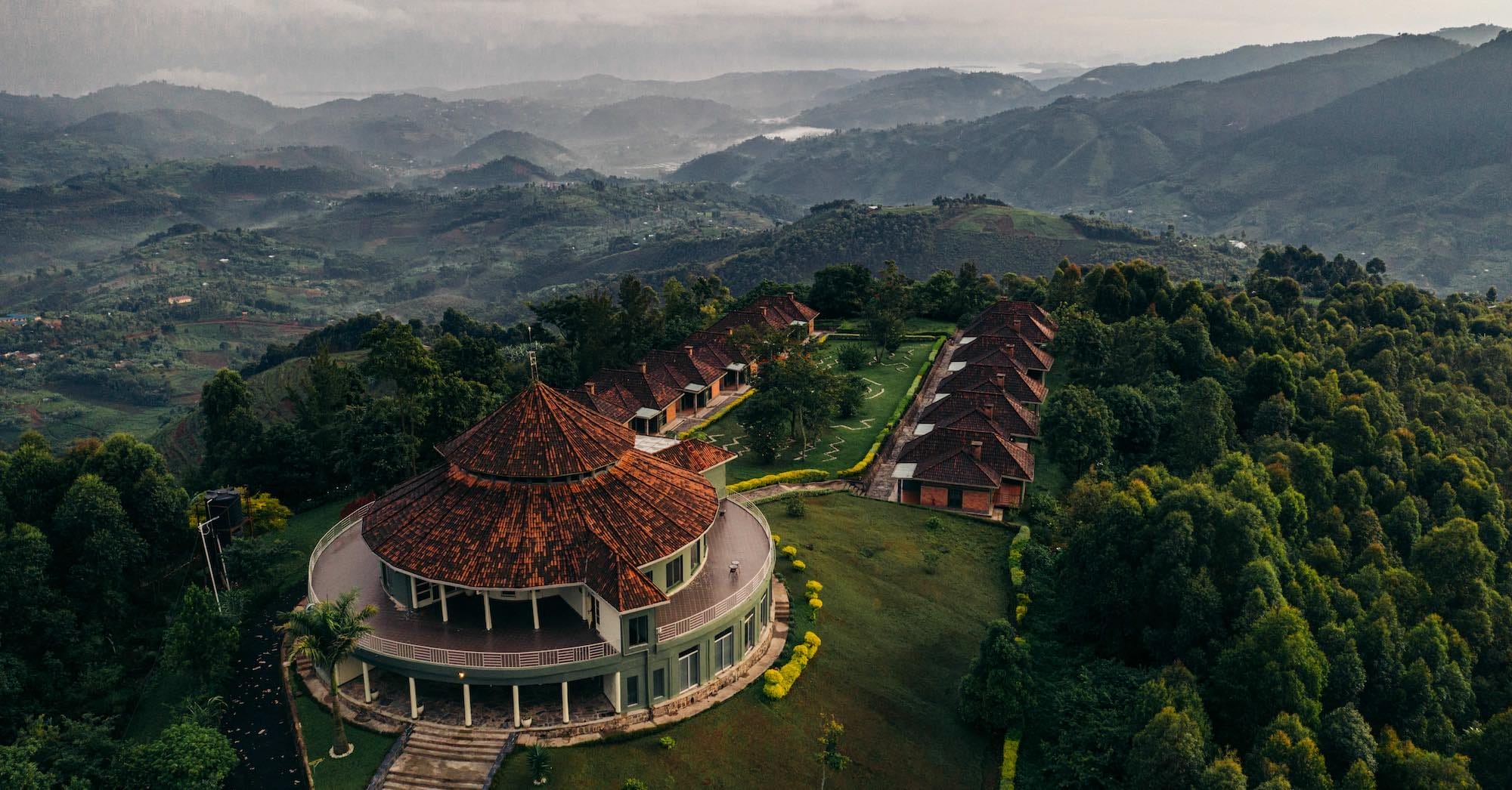 Nyungwe Top View Hill Hotel has incomparable views of the Nyungwe Forest National Park, Kahuzi Biega National Park, surrounding tea plantations, Lake Kivu, the volcanoes and Idjwi Island right from the top of the hill.