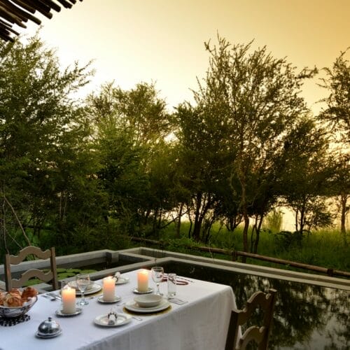 Ngoma Safari Lodge is situated within the Chobe Forest Reserve bordering the western edge of Chobe National Park and overlooking the Chobe River. All 8 river facing suites have spacious internal and external living areas including both an inside and outside shower, luxury bath and a private splash pool. There is a swimming pool, sundeck, bar and dining area. As Ngoma Safari Lodge is situated in a Forest Reserve, both walking and night drives are permitted and activities include: game walks, games drives, birding as well as a full day game activity including cruising on the Chobe River and driving within the Chobe National Park.