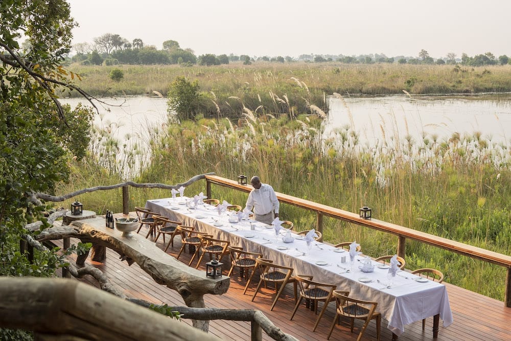 The main lodge is known as the ‘tree house’ and is a multi-tiered structure with the dining room adjoined by stairs and ramps (for wheelchair-friendly access) to several lounging areas each offering different aspects across the delta.