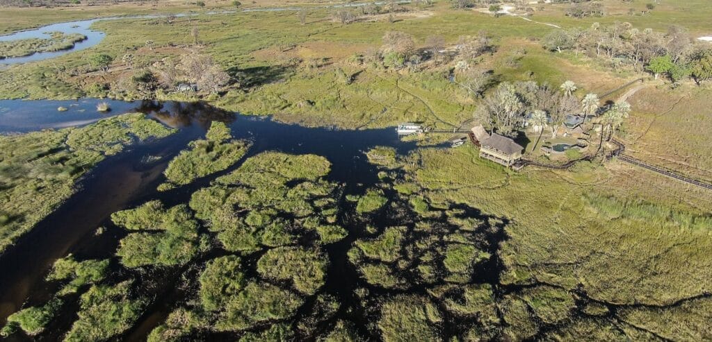 The Okavango Delta is one of the world’s largest inland water systems. It’s headwaters start in Angola’s western highlands, with numerous tributaries joining to form the Cubango river, which then flows through Namibia (called the Kavango) and finally enters Botswana, where it is then called the Okavango.