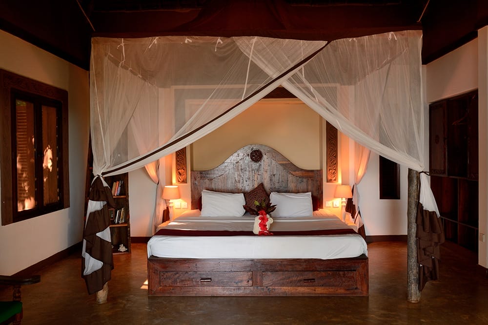 Set in this exquisite wilderness of tropical forests and secluded beaches there are twenty six spacious ensuite rooms; twenty are deluxe ‘bandas’ with ensuite bathroom, terrace, stunning ocean view, suitable for families or couples. Four are Luxury Suites, and there are two Baobab Suites. All of the rooms have king size double beds, mosquito nets, fans and top-quality imported bed linen and quilts.