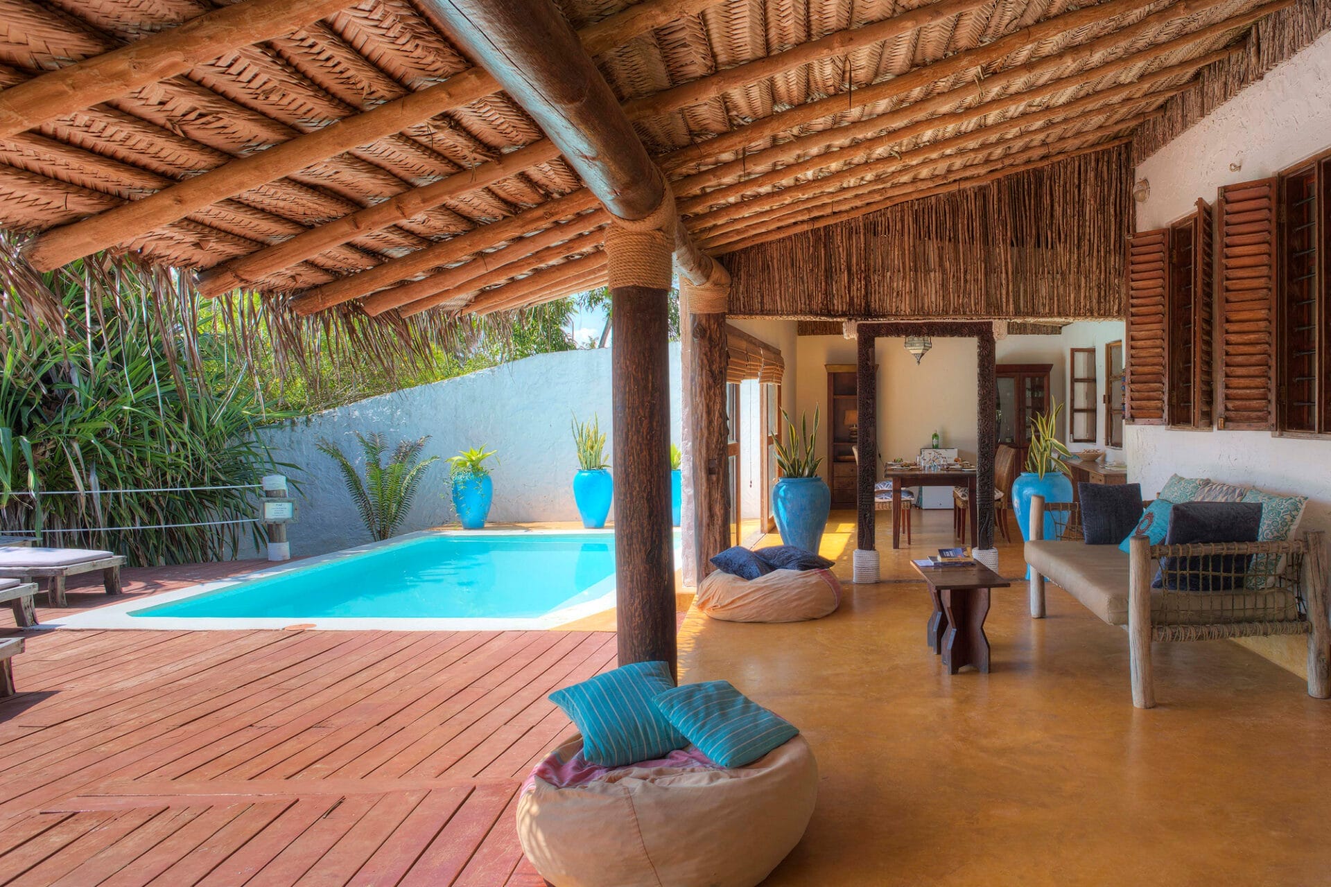 The three bedroom traditional beach house sits just five paces from the beach with your private pool deck that lies between the two. The house sits in its own enclosure and looks out over the plunge pool to the beach and blue sea beyond, both of which are accessed by a private path and gate.
